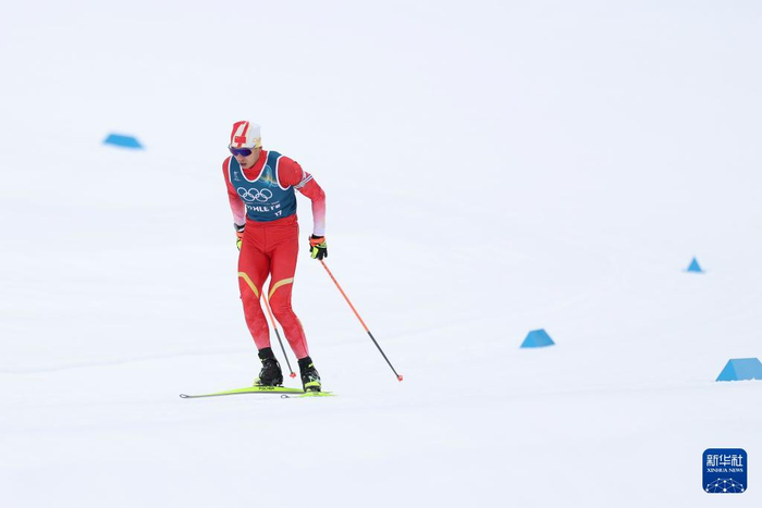 2月6日,中国冬季两项队队员闫星元在训练中。