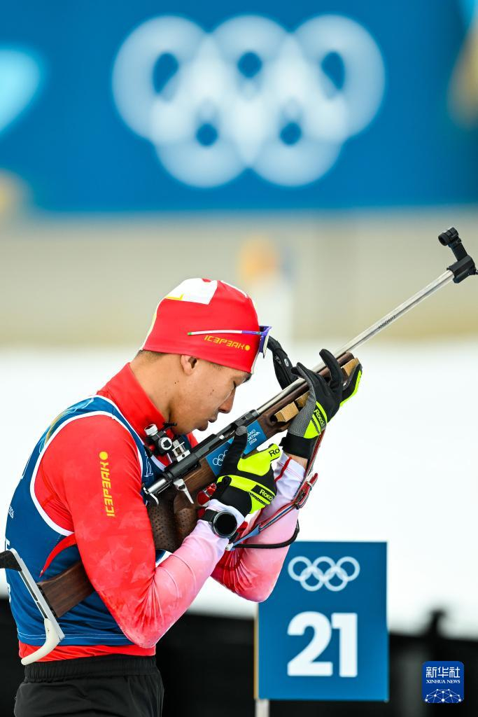 2月6日,中国冬季两项队队员褚源蒙在训练中。